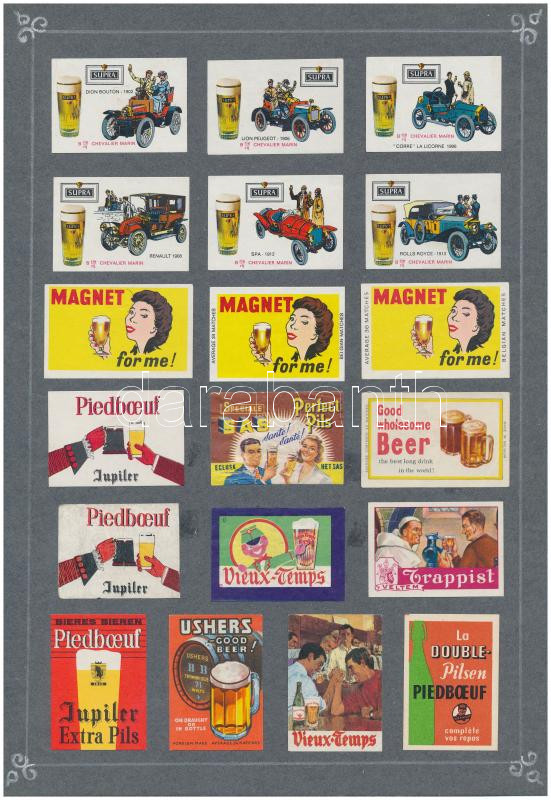 Beschreibung: 600db Belga gyufacímke 25 kartonra ragasztva, különböző méretben, szép állapotban