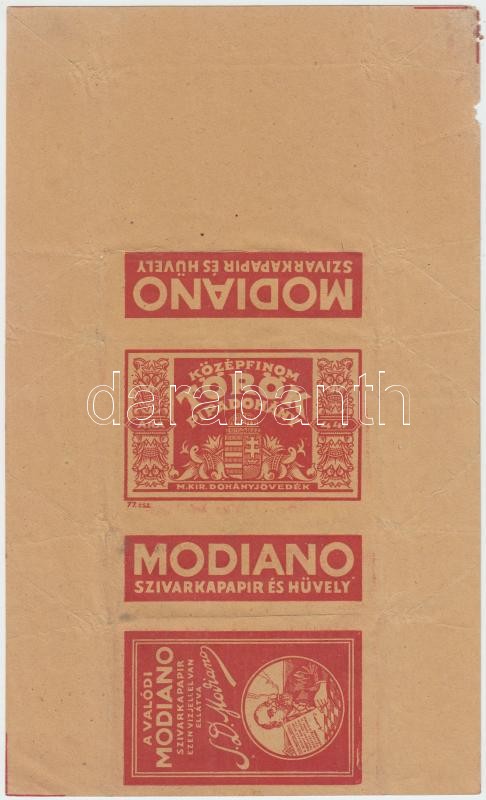 Modiano szivarkapapír csomagolása, 3 db, 23x14 cm https://www.darabanth.com/de/261-Fernauktion/261.0/Andere-Sammelgebiete/Werbungen~19/Modiano-szivarkapapir-csomagolasa-3-db-23x14-cm~II1293040