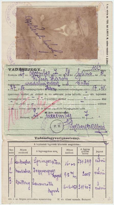 1927 Fényképes, kitöltött vadászjegy https://www.darabanth.com/de/261-Fernauktion/261.0/Andere-Sammelgebiete/~27/1927-Fenykepes-kitoltott-vadaszjegy~II1292665