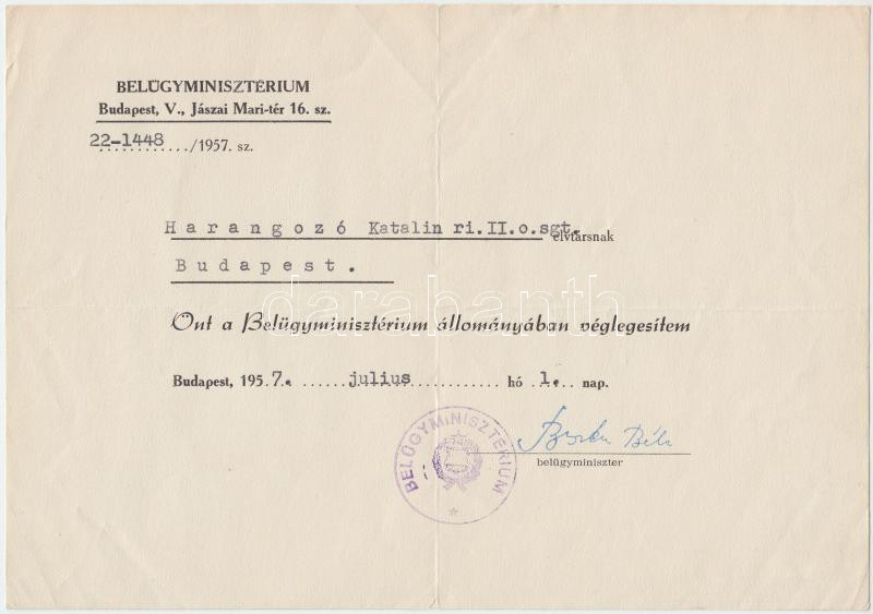 1957 Belügyminisztériumi kinevező okirat, Biszku Béla autopen aláírásá... https://www.darabanth.com/de/261-Fernauktion/261.0/Andere-Sammelgebiete/~27/1957-Belugyminiszteriumi-kinevezo-okirat-Biszku-Bela-autopen-alairasaval~II1292164