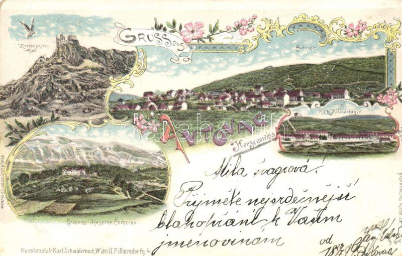 Beschreibung: 1897 Avtovac, Kordonposten Gat., K.u.K. Militärlager, Cordons-Kaserne Cemerno / military barracks, floral, Art Nouveau, litho (b)