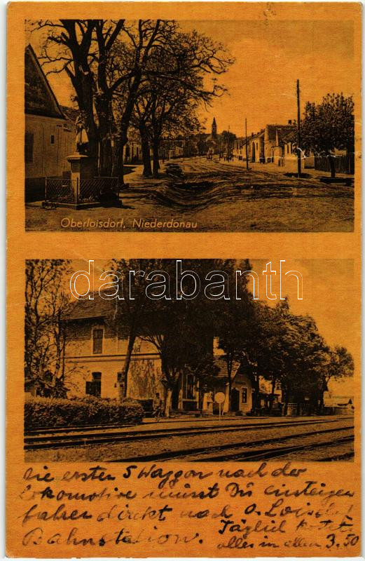 Beschreibung: Felsőlászló, Oberloisdorf; vasútállomás, utca / railway station, street (fa)
