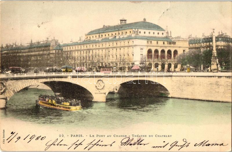 Paris, La Pont au Change, Theatre du Chatelet / bridge, theatre, steam... https://www.darabanth.com/de/261-Fernauktion/261.0/Ansichtskarten/Frankreich~400024/Paris-La-Pont-au-Change-Theatre-du-Chatelet-bridge-theatre-steamship~II1236874