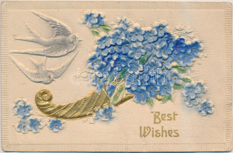Best wishes / Floral greeting card, swallows, Emb. (fa) https://www.darabanth.com/de/261-Fernauktion/261.0/Ansichtskarten/GruC39Fkarten-Feste~400074/Best-wishes-Floral-greeting-card-swallows-Emb-fa~II1264061