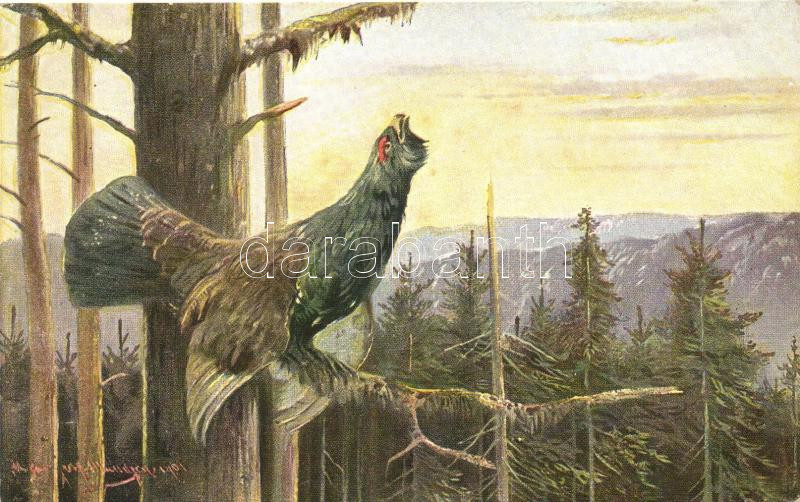 Siketfajd / Wood Grouse, artist signed (worn edges) https://www.darabanth.com/de/261-Fernauktion/261.0/Ansichtskarten/Jagd~400077/Siketfajd-Wood-Grouse-artist-signed-worn-edges~II1296416