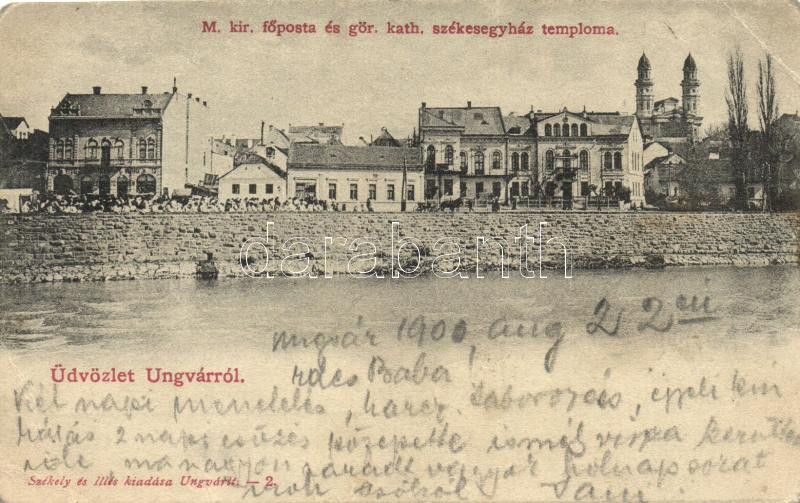 Beschreibung: Ungvár, Uzhorod; Főposta, Görög katolikus székesegyház temploma, kiadja Székely és Illés / post office, church (fa)