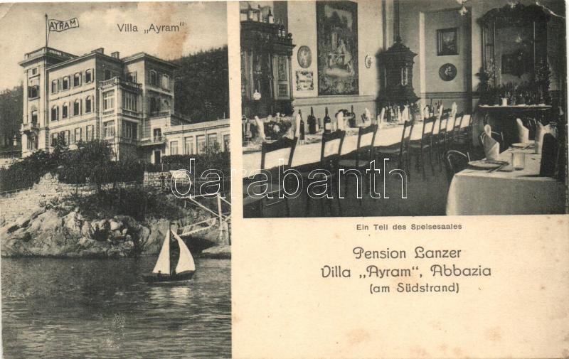 Abbazia, Ayram villa, étterem, belső / villa, restaurant interior (EK) https://www.darabanth.com/de/261-Fernauktion/261.0/Ansichtskarten/Kroatien~400012/Abbazia-Ayram-villa-etterem-belso-villa-restaurant-interior-EK~II1295223