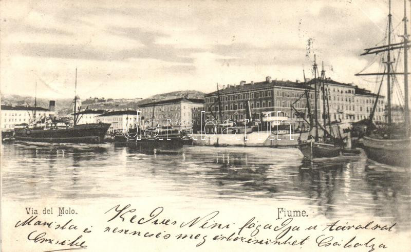 Fiume, Via del Molo / port, ships (fa) https://www.darabanth.com/de/261-Fernauktion/261.0/Ansichtskarten/Kroatien~400012/Fiume-Via-del-Molo-port-ships-fa~II1288296