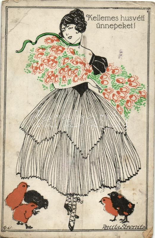 Easter, Lady, chicken s: Paula Strenitz (EB) https://www.darabanth.com/de/261-Fernauktion/261.0/Ansichtskarten/Kunstlerkarten~400086/Easter-Lady-chicken-s-Paula-Strenitz-EB~II1293003