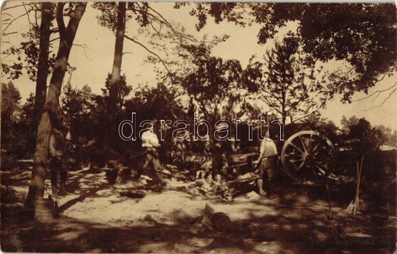 WWI K.u.K. military camp, soldiers with cannon, photo https://www.darabanth.com/de/261-Fernauktion/261.0/Ansichtskarten/Militaria~400076/WWI-KuK-military-camp-soldiers-with-cannon-photo~II1246151