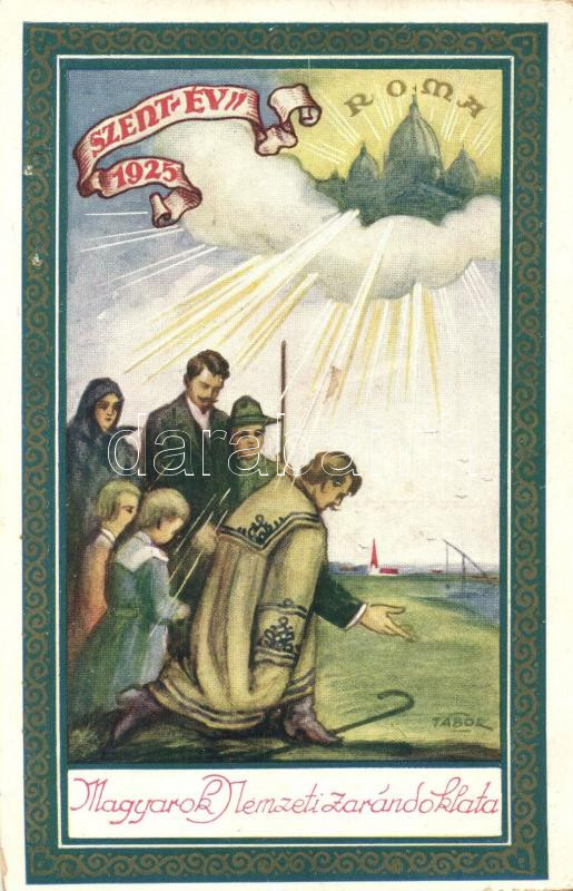 1925 Szentév, Magyarok Nemzeti Zarándoklata; a Nemzeti Újság nyereményjátéka / Hungarian National Pilgrimage to Rome, folklore s: Tábor (tűnyom / pinhole)