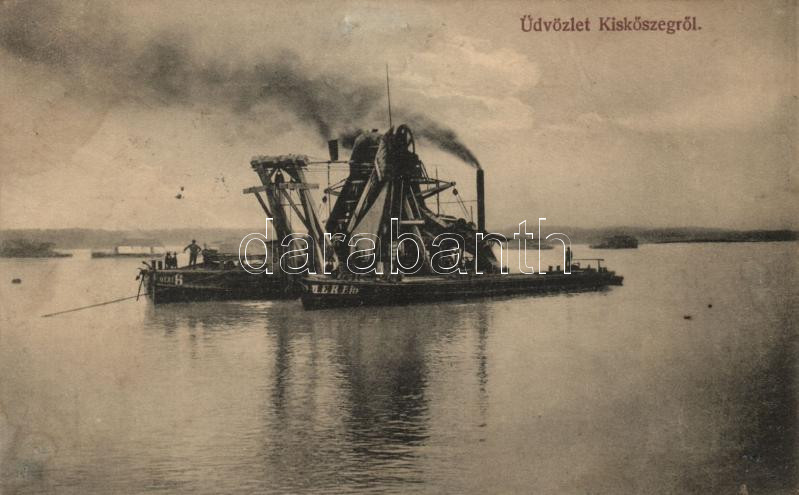 Beschreibung: Kiskőszeg, Batina. Teherkomp, kiadja Borkovits Nándor kereskedő / freighter (fl)