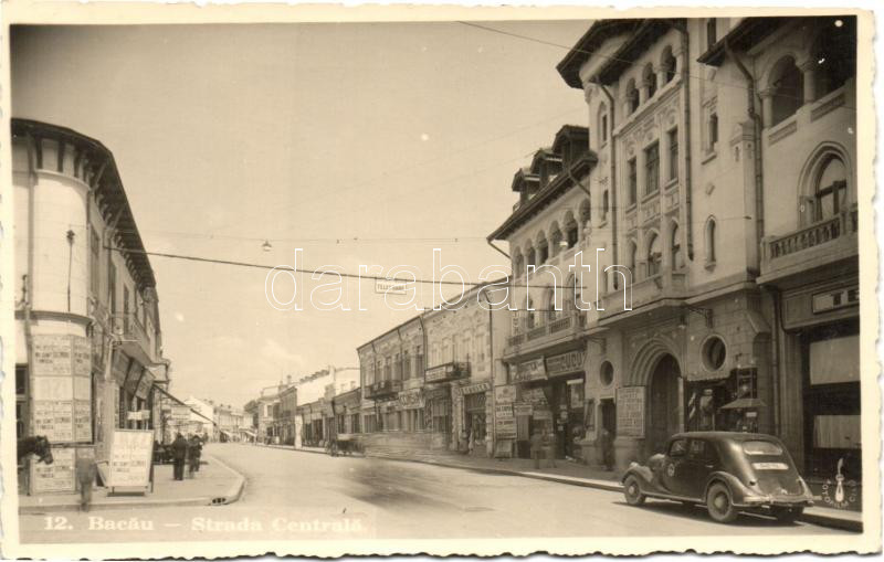Bákó, Bacau; Strada Centrala / main street, shops, automobile https://www.darabanth.com/de/261-Fernauktion/261.0/Ansichtskarten/Siebenburgen~400008/Bako-Bacau-Strada-Centrala-main-street-shops-automobile~II1296187
