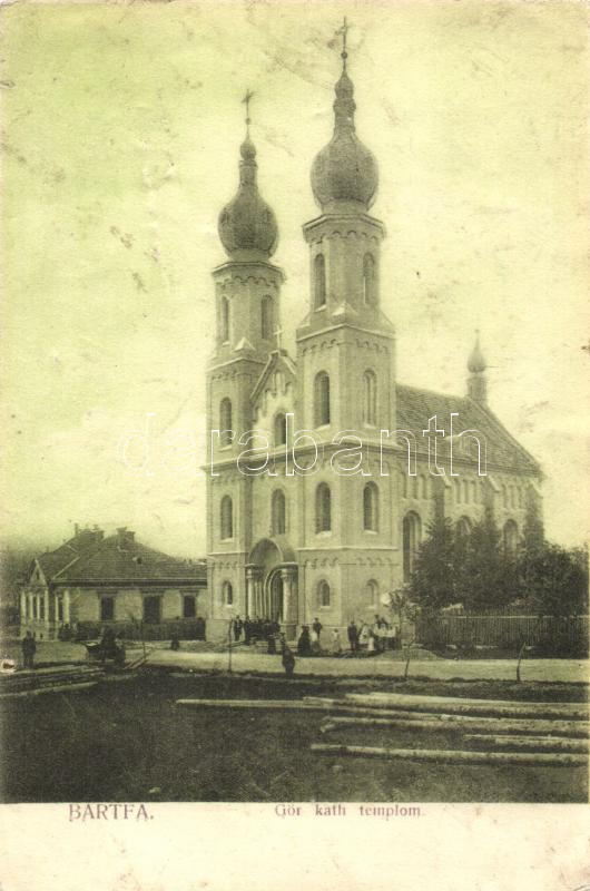 Bártfa, Görög katolikus templom / Greek catholic church (wet damage) https://www.darabanth.com/de/261-Fernauktion/261.0/Ansichtskarten/Slowakei~400009/Bartfa-Gorog-katolikus-templom-Greek-catholic-church-wet-damage~II1297655