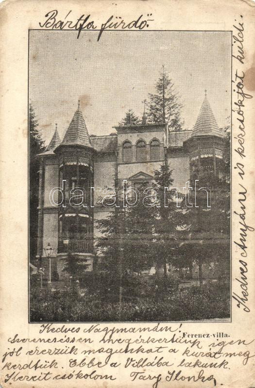 Bártfafürdő, Bardejovské kúpele; Ferencz-villa (Rb) https://www.darabanth.com/de/261-Fernauktion/261.0/Ansichtskarten/Slowakei~400009/Bartfafurdo-Bardejovske-kupele-Ferencz-villa-Rb~II1297640