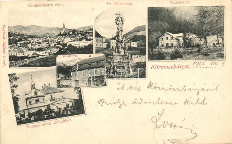 Körmöcbánya, Kremnica; Felső utca, Stubnyafürdő, Vadászkürt, Szentháro... https://www.darabanth.com/de/261-Fernauktion/261.0/Ansichtskarten/Slowakei~400009/Kormocbanya-Kremnica-Felso-utca-Stubnyafurdo-Vadaszkurt-Szentharomsag-Kiadja-Politze~II1295780