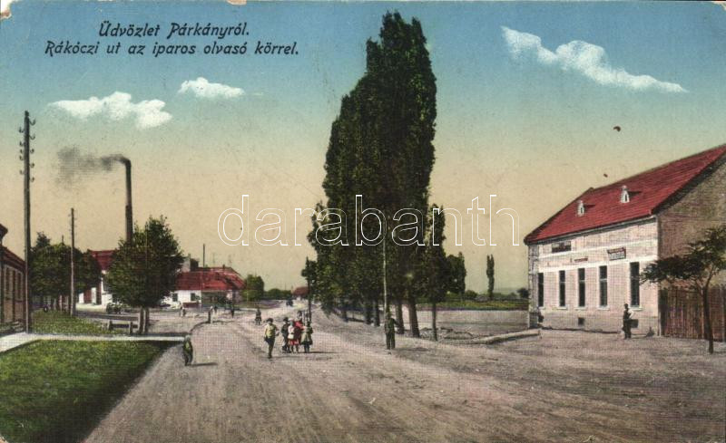 Párkány, Stúrovo; Rákóczi út, Iparos olvasókör / street, literary club... https://www.darabanth.com/de/261-Fernauktion/261.0/Ansichtskarten/Slowakei~400009/Parkany-Sturovo-Rakoczi-ut-Iparos-olvasokor-street-literary-club-badly-damaged-backsi~II1297697