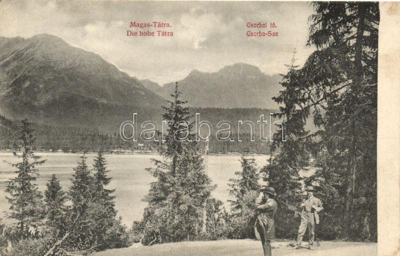Beschreibung: Tátra Csorba-tó, túrázó urak, Feitzinger Ede kitüntetett műkiadása 165.