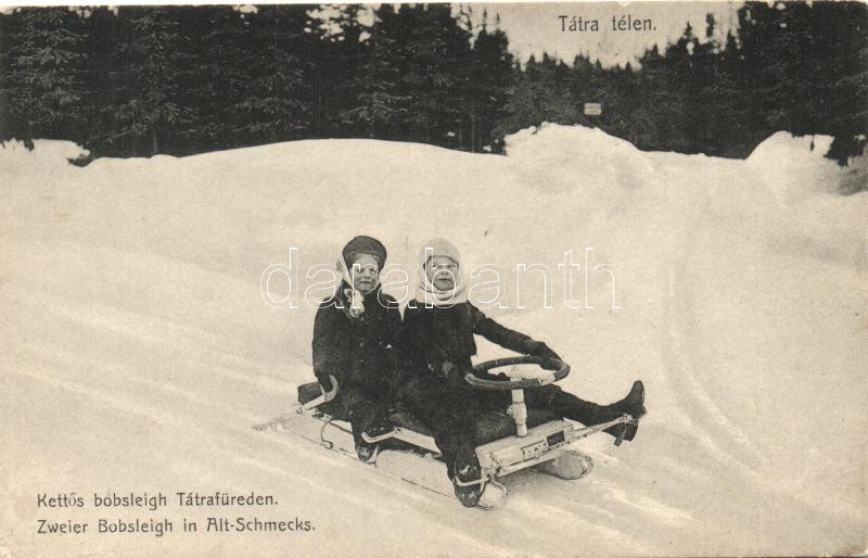 Tátrafüred, Stary Smokovec, Tátra; Kettős bobsleigh, gyerekek, kiadja ... https://www.darabanth.com/de/261-Fernauktion/261.0/Ansichtskarten/Slowakei~400009/Tatrafured-Stary-Smokovec-Tatra-Kettos-bobsleigh-gyerekek-kiadja-Feitzinger-Ede-children-~II1294481