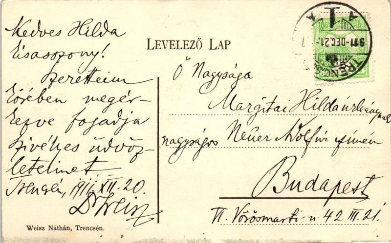 Trencsén, Látkép; Weisz Náthán kiadása / view https://www.darabanth.com/de/261-Fernauktion/261.0/Ansichtskarten/Slowakei~400009/Trencsen-Latkep-Weisz-Nathan-kiadasa-view~II1045666