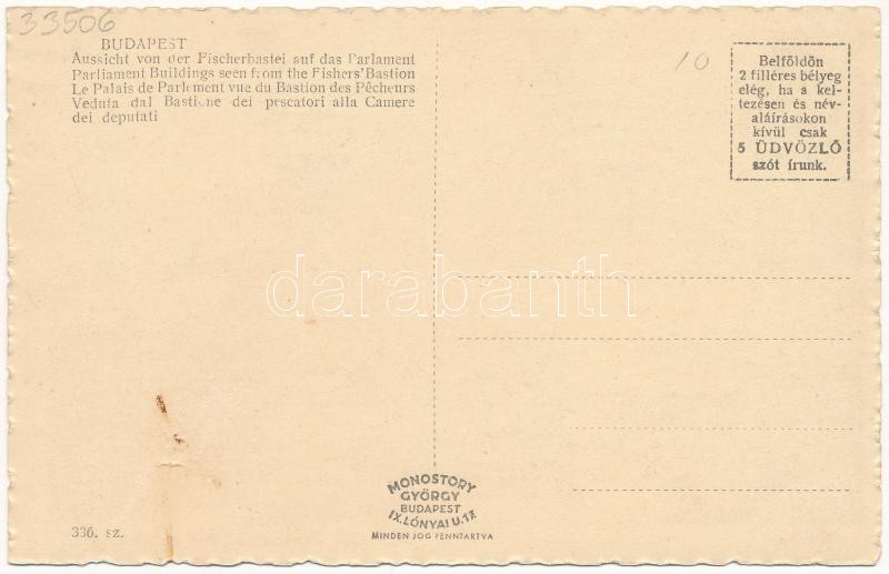 Budapest V. Országház, kilátás a Halászbástyáról (Rb) https://www.darabanth.com/de/261-Fernauktion/261.0/Ansichtskarten/Ungarn~400006/Budapest-V-Orszaghaz-kilatas-a-Halaszbastyarol-Rb~II1239774