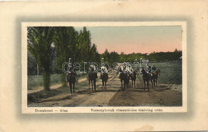 Dunakeszi-Alag; Versenylovak visszatérése training után (ferdén vágott... https://www.darabanth.com/de/261-Fernauktion/261.0/Ansichtskarten/Ungarn~400006/Dunakeszi-Alag-Versenylovak-visszaterese-training-utan-ferden-vagott-slant-cut~II1294646