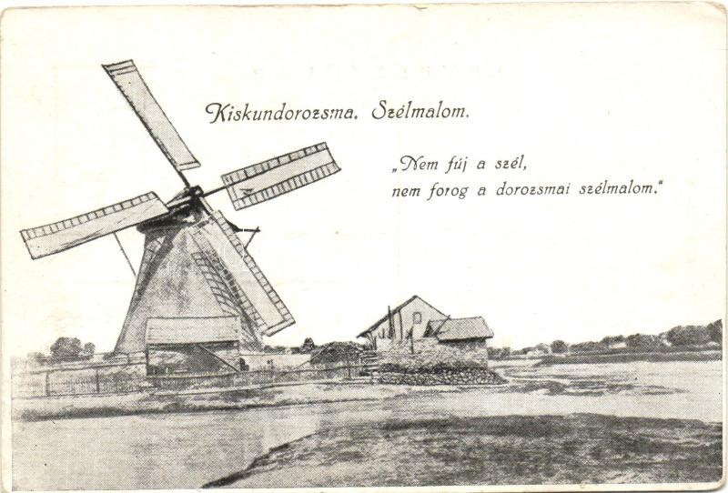 Kiskundorozsma, Szélmalom, 'Nem fúj a szél nem forog a dorozsmai ... https://www.darabanth.com/de/261-Fernauktion/261.0/Ansichtskarten/Ungarn~400006/Kiskundorozsma-Szelmalom-Nem-fuj-a-szel-nem-forog-a-dorozsmai-szelmalom-o~II1294957