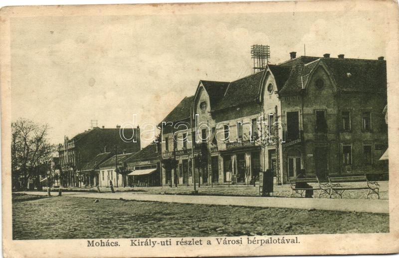 Mohács, Király út, Városi bérpalota, Adler József, Molnár és Fischer M... https://www.darabanth.com/de/261-Fernauktion/261.0/Ansichtskarten/Ungarn~400006/Mohacs-Kiraly-ut-Varosi-berpalota-Adler-Jozsef-Molnar-es-Fischer-Mor-uzlete-gyogysze~II1203698