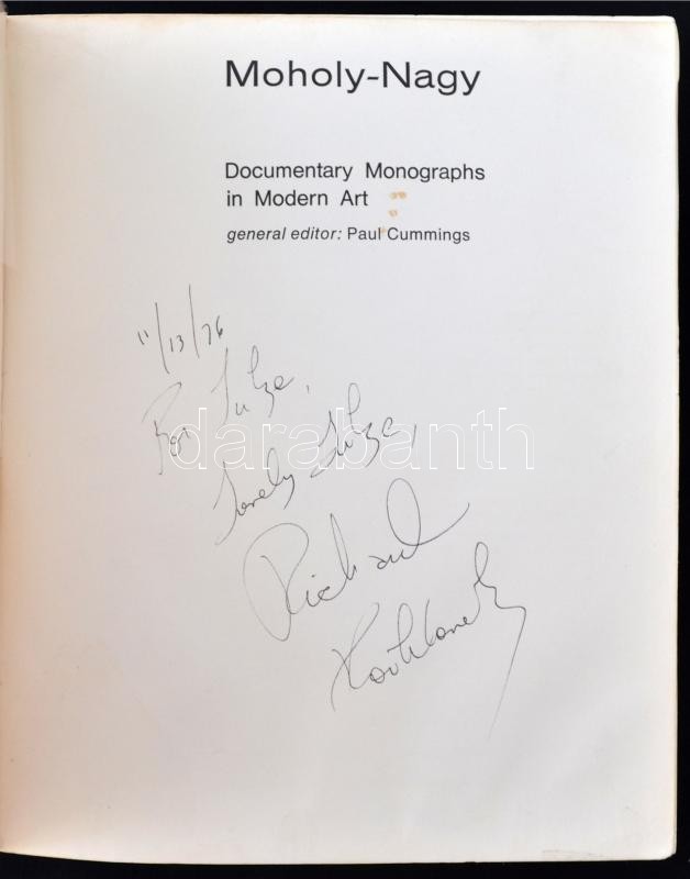 Moholy-Nagy. Documentary Monograph. Edited by Richard Kostelanetz. New... https://www.darabanth.com/de/261-Fernauktion/261.0/Bucher/Bucher-Architektur-Kunst~400097/Moholy-Nagy-Documentary-Monograph-Edited-by-Richard-Kostelanetz-New-York-1970-Praeger-Kiadoi-~II1297062