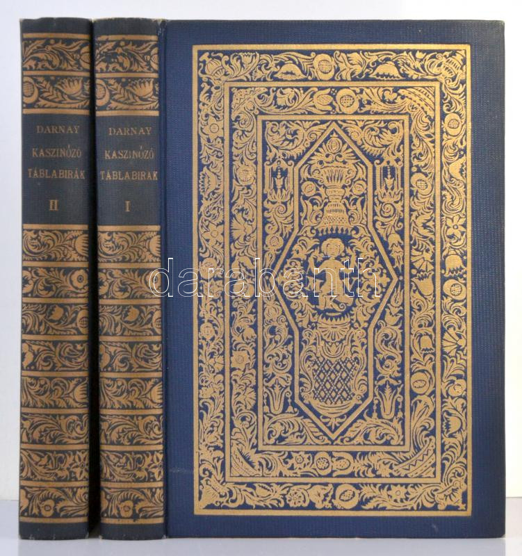 Beschreibung: Darnay Kálmán: Kaszinózó táblabírák. Korfestő történeti tréfák I-II. Bp., 1928, Athenaeum 208 p.+ 5 t.; 229 p.+ 7 t. Dúsan aranyozott, kiadói egészvászon-kötésben, kifejezetten szép állapotban.