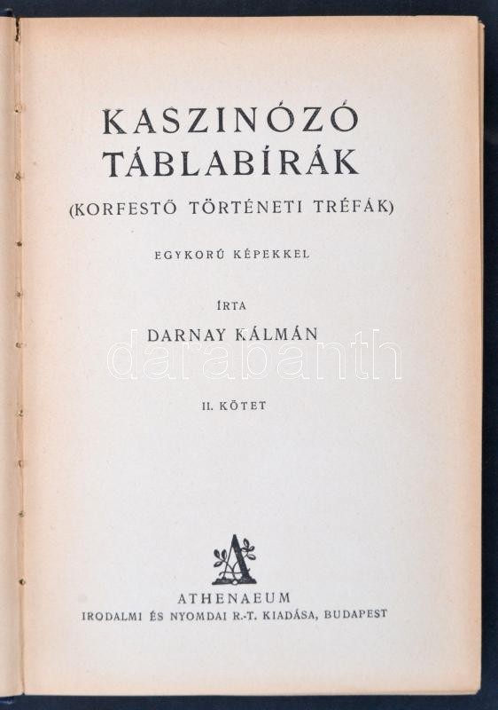 Darnay Kálmán: Kaszinózó táblabírák. Korfestő történeti tréfák I-II. B... https://www.darabanth.com/de/261-Fernauktion/261.0/Bucher/Bucher-Geschichte~33/Darnay-Kalman-Kaszinozo-tablabirak-Korfesto-torteneti-trefak-I-II-Bp-1928-Athenaeu~II1295056