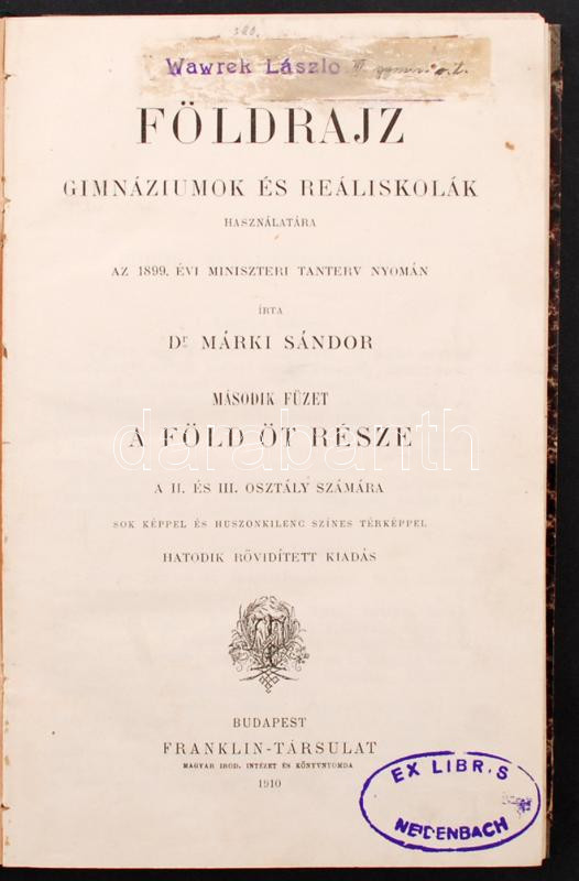 Márki Sándor: Földrajz II. sok képpel és 29 színes térképpel. Bp., 191... https://www.darabanth.com/de/261-Fernauktion/261.0/Bucher/Bucher-Reisen-Stadte~30/Marki-Sandor-Foldrajz-II-sok-keppel-es-29-szines-terkeppel-Bp-1910-Franklin-Megviselt~II1284142