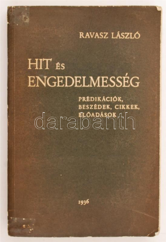 Ravasz László: Hit és engedelmesség. Prédikációk, beszédek, cikkek, el... https://www.darabanth.com/de/261-Fernauktion/261.0/Bucher/Bucher-Religion~40/Ravasz-Laszlo-Hit-es-engedelmesseg-Predikaciok-beszedek-cikkek-eloadasok-Bp-1936-~II1290609