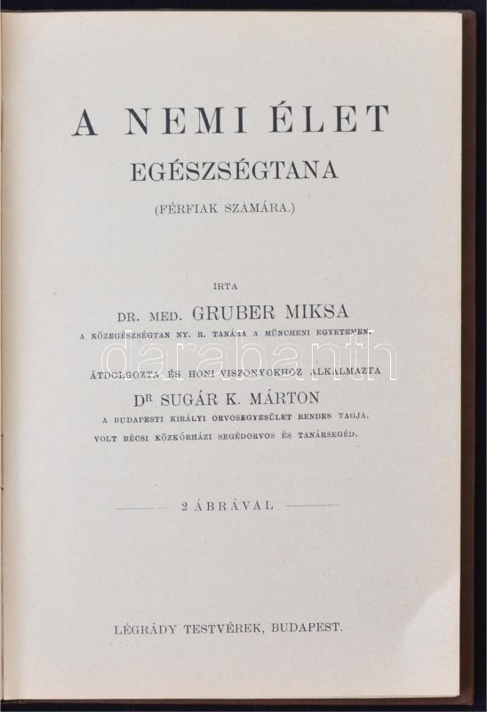Dr. Gruber Miksa: A nemi élet egészségtana (Férfiak számára). Az Egészségápolás Könyvtára. Szerk.: Dr. Sugár K. Márton. II. kötet. Bp., 1907, Légrády. Kiadói egészvászon kötésben, jó állapotban.