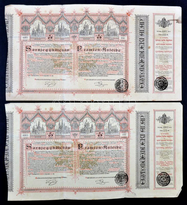 Budapest 1886. "Egyházi Műemlék Alap" (2x) Sorsjegykölcsönök 5Ft-ról a budapest-lipótvárosi bazilika kiépítésére s egyházi műemlékek fenntartására, mindkettő felülbélyegzésekkel T:III