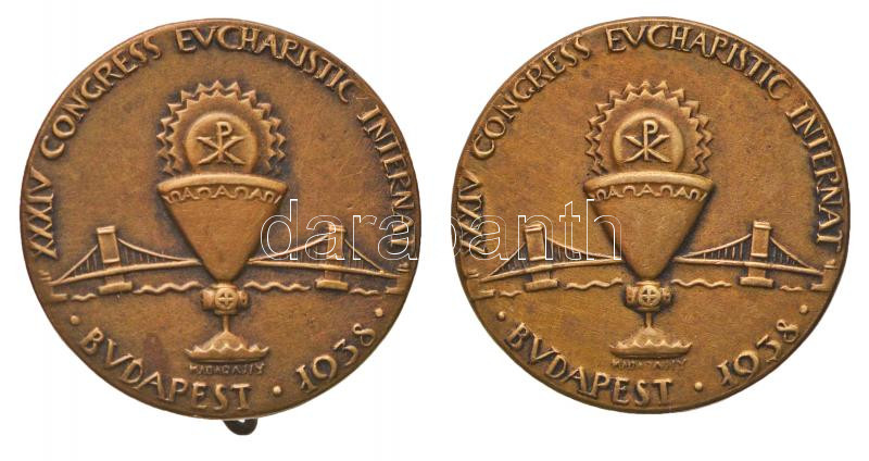 1938. "XXXIV. Nemzetközi Eucharisztikus Kongresszus Budapest" Br jelvény, hátoldalán "LUDVIG BP." és "TÖRV. VÉD." jelzéssel (2x) (22,5mm) T:2,2- egyik tűje letört