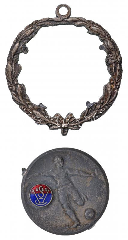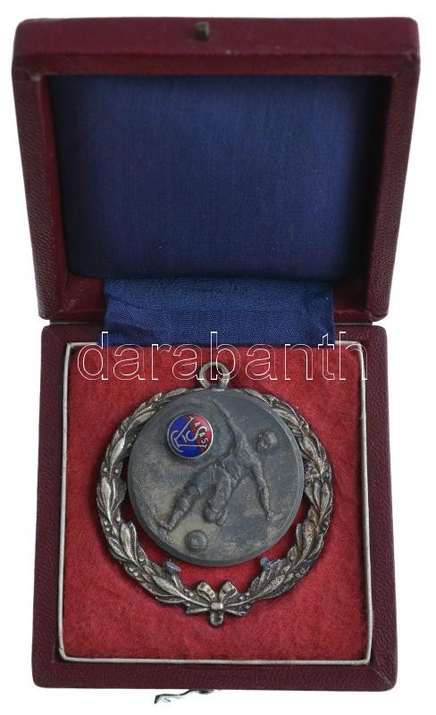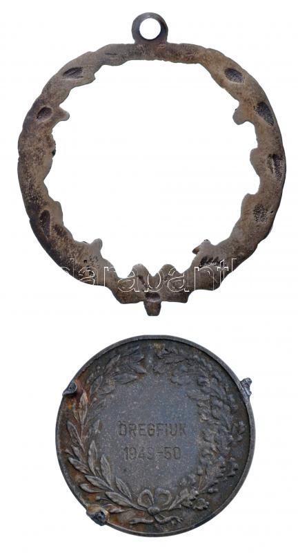 1949-1950. "Vasas / Öregfiúk" zománcozott fém díjérem eredeti Vasas dísztokban, az érem a keretről letört! T:2-