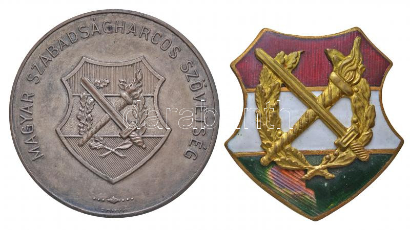 1949. "Magyar Szabadságharcos Szövetség" zománcozott fém jelvény + ~1950. "Magyar Szabadságharcos Szövetség / VIII. 20." ezüstözött fém emlékérem (50mm) T:2- zománchiba, 2