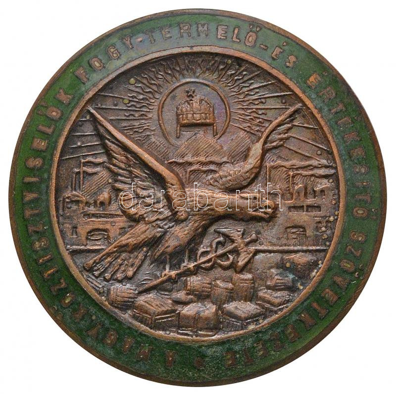 ~1920. "A Magyar Köztisztviselők Fogyasztó- Termelő- és Értékesítő Szövetkezete" zománcozott gomblyuk jelvény "MORZSÁNYI BUDAPEST IV. ESKÜ U. 5." gyártói jelzéssel (27mm) T:2