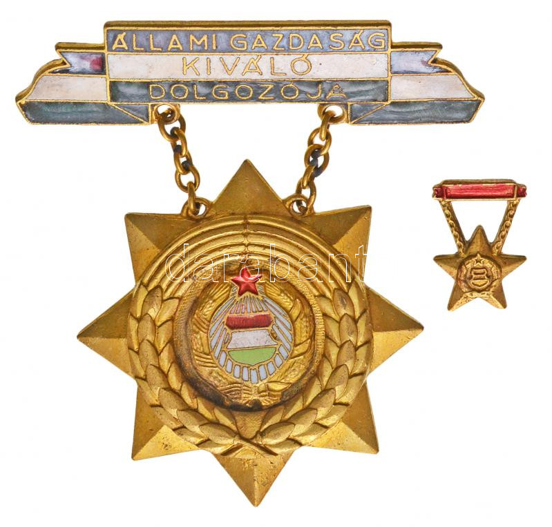 ~1960. "Állami Gazdaság Kiváló Dolgozója" zománcozott Br kitüntetés miniatűrrel, szennyezett eredeti tokban T:1-