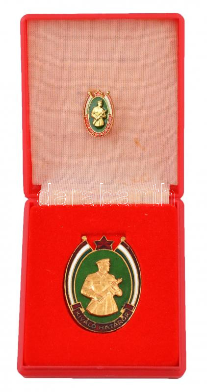 Beschreibung: ~1970. "Kiváló Határőr" aranyozott, zománcozott jelvény eredeti tokban miniatűrrel T:2