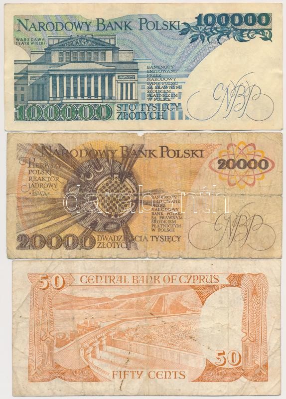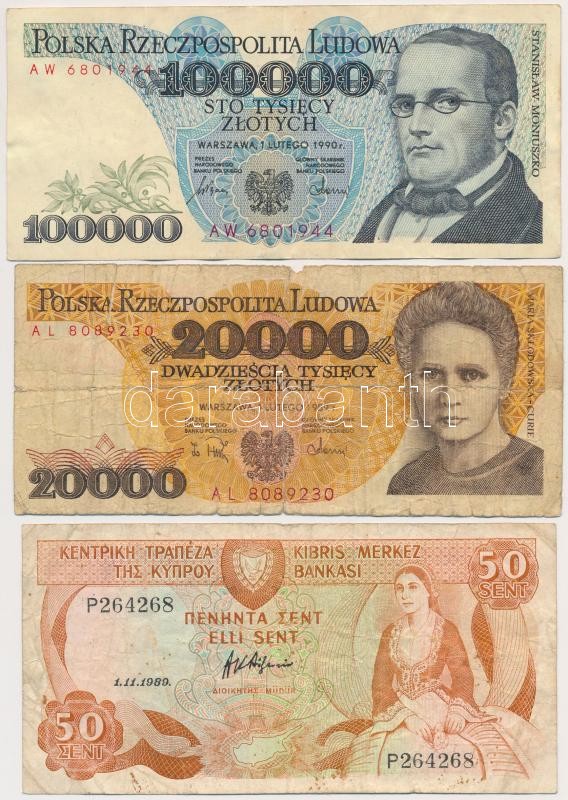 9db-os érem, kitüntetés és bankjegy tétel: Kiss Nagy András (1930-1997) 1981. "A Magyar Numizmatikai Társulat LXXX éves fennállásának emlékére" Br emlékérem (40mm) + 1938. "Felvidéki Emlékérem - II. Rákóczi Ferenc" Br emlékérem mellszalag nélkül + Lengyelország 1982-1988. 5000Zl (4x) + 1989. 20.000Zl + 1990. 100.000Zl + Ciprus 1989. 50c T:vegyes