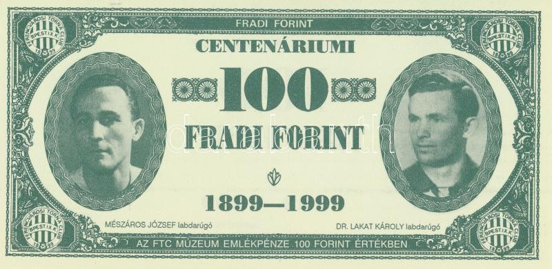 1999. 100Ft névértékű " Centenáriumi Fradi Forint" Sike, Jurikné, Mészáros, Dr. Lakat fényképével T:I