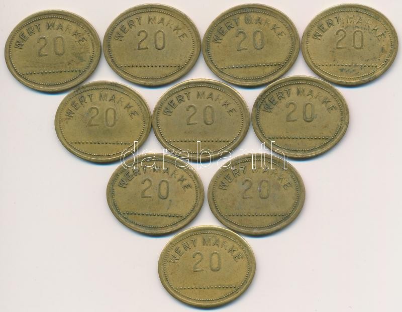 Németország DN "20 Wertmarke" Cu zseton (10x) (25x21mm) T:2 Germany ND "20 Wertmarke" Cu token (10x) (25x21mm) C:XF