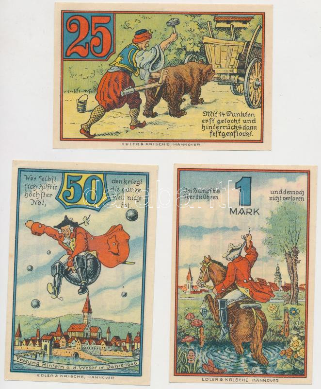Németország / Weimari Köztársaság / Rinteln 1920. 25pf + 50pf + 1M szü... https://www.darabanth.com/de/261-Fernauktion/261.0/Numismatik/Notgelden~300006/Nemetorszag-Weimari-Koztarsasag-Rinteln-1920-25pf-plus-50pf-plus-1M-szuksegpenz-TAU--Germany~II1296941