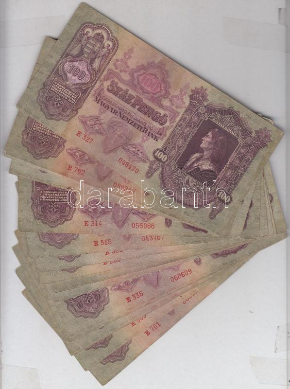 1930. 100P (50x) T:vegyes https://www.darabanth.com/de/261-Fernauktion/261.0/Numismatik/Ungarische-Banknoten~300007/1930-100P-50x-Tvegyes~II1291388