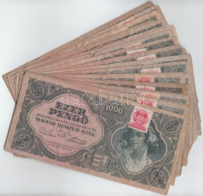 Beschreibung: 1945. 1000P (30x) mind piros "MNB" bélyeggel T:vegyes
