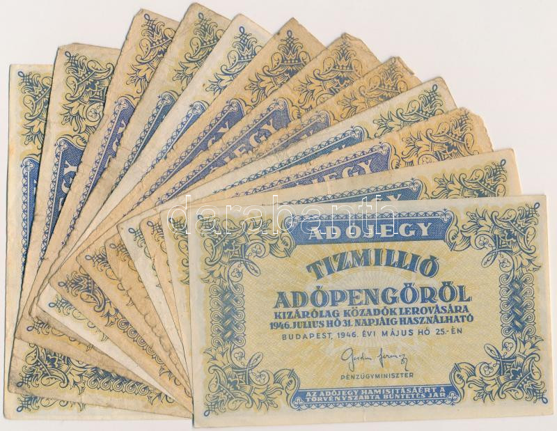 1946. 10.000.000AP (12x) T:vegyes https://www.darabanth.com/de/261-Fernauktion/261.0/Numismatik/Ungarische-Banknoten~300007/1946-10000000AP-12x-Tvegyes~II1293310