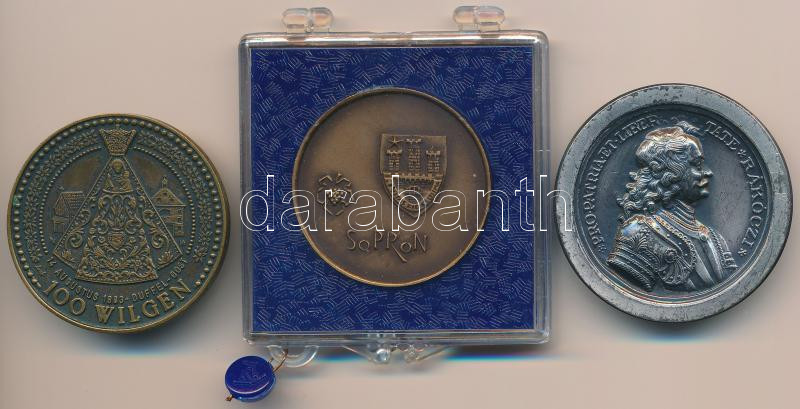 Vegyes: 1977. "Sopron" Br emlékérem plombált "ÁPV" plasztiktokban (31mm) + DN "Rákóczi" fém emlékérem (38,5mm) + Hollandia 1983. "Duffeli Miasszonyunk" Br emlékérem (35mm) T:2