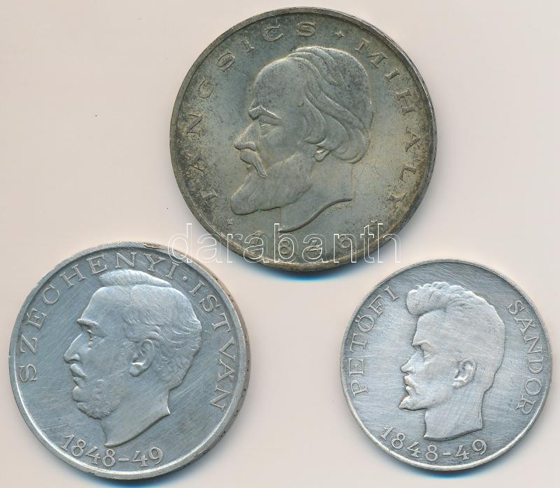 Beschreibung: 1948. 5Ft Ag "Petőfi" + 10Ft Ag "Széchenyi" + 20Ft Ag "Táncsics", "Szabadságharc sor" T:2,2- ph., karc